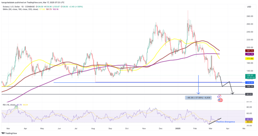SOL, 19 Ocak’ta belirlenen yaklaşık 294$’lık tüm zamanların en yüksek seviyesinin %56 altında işlem görüyor ve grafik teknik verileri önümüzdeki birkaç hafta içinde daha fazla düşüş için yer olduğunu gösteriyor.