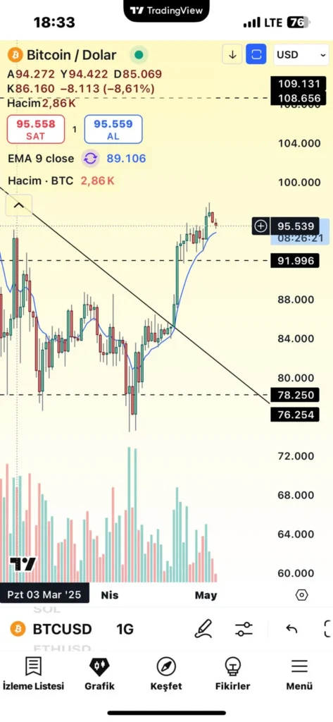 Bitcoin (BTC) Analizi: 95540 Seviyesi Kritik